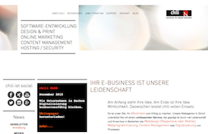 Ihr E-Business ist unsere Leidenschaft. Am Anfang steht Ihre Idee. Am Ende ist Ihre Idee Wirklichkeit. Dazwischen leistet chili vollen Einsatz. Es ist unser Ziel, Ihr eBusiness zum Erfolg zu machen. Unsere Webagentur in Zürich unterstützt Sie mit einem umfassenden Service, der geprägt ist durch viel Leidenschaft und Know-how in Bereichen wie Webdesign (Responsive oder Mobile), Webprogrammierung, Content Management oder Digitalisierung von Prozessen.